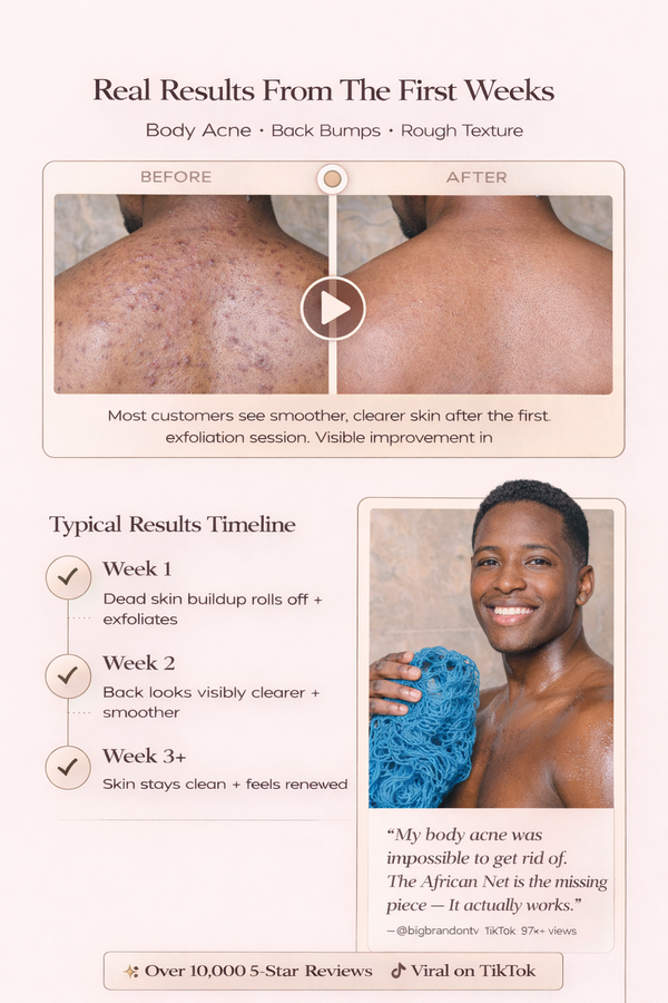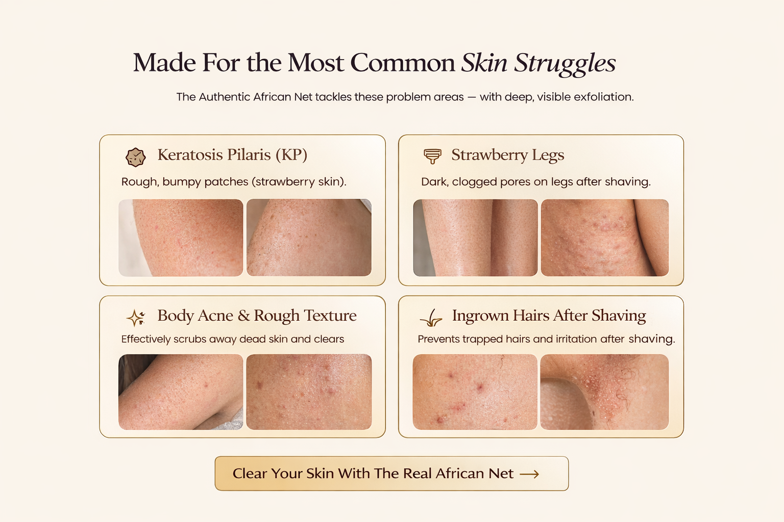Thousands of customers are using the African Net to smooth bumps, clear texture, and glow confidently.